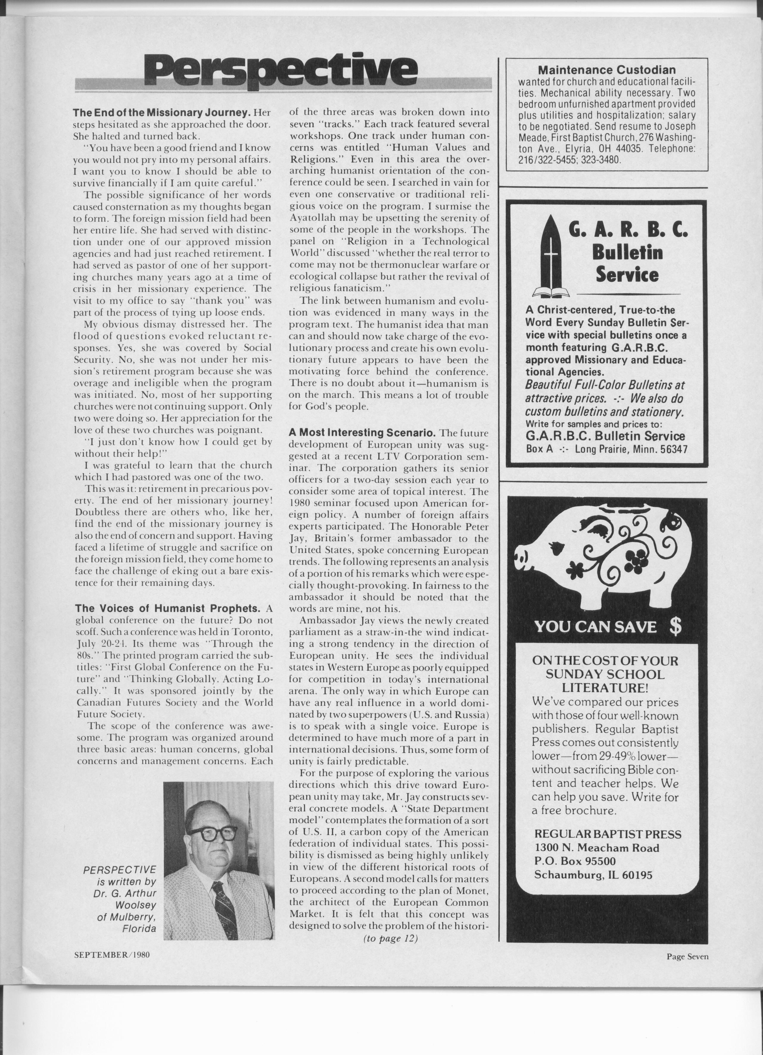 This is an interesting article from May 1983, Baptist Bulletin. The first part is about sharing the Gospel the right and the wrong way. The second part is about the new High Technology era of lasers and genetic engineering. This was written pre-PCs and cell phones.